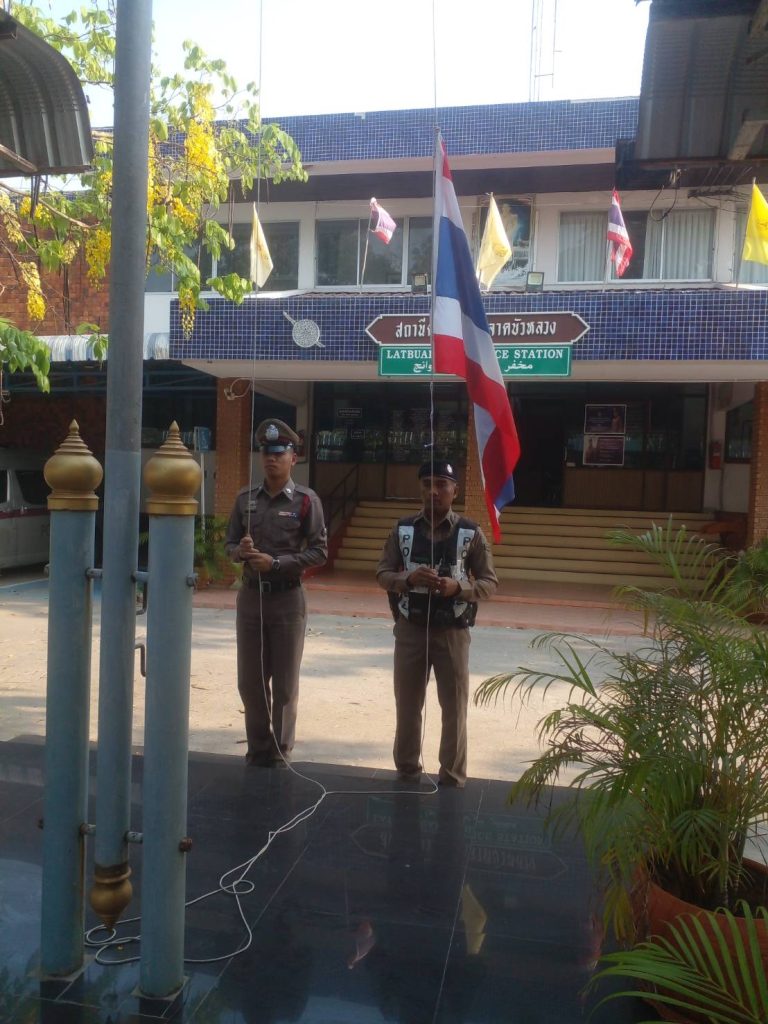 – ได้เรียกแถวข้าราชการตำรวจ มาเข้าแถวเพื่อเคารพธงชาติ สวดมนต์ไหว้พระ กล่าวคำปฏิญาณ