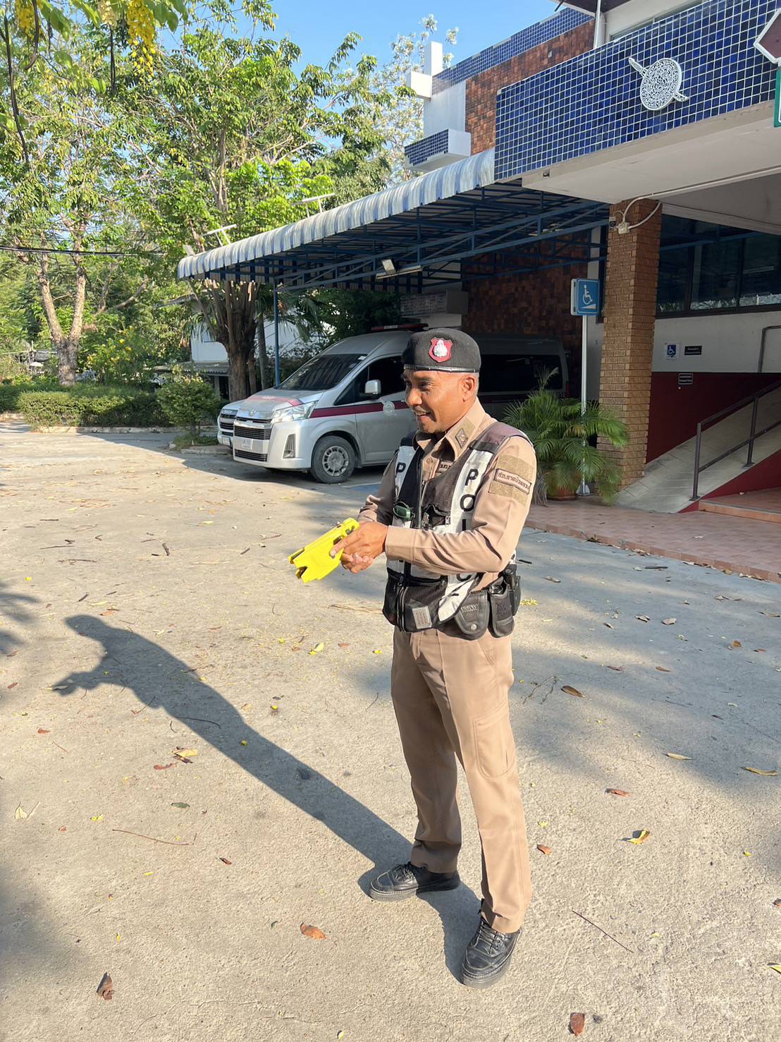 จิตอาสาพระราชทาน เราทำความดีด้วยหัวใจ ขณะกำลังปฏิบัติหน้าที่ทำความสะอาดรอบสถานีตำรวจ ได้ช่วย